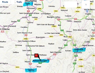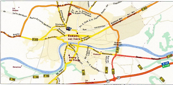 Autoroute A7 de Marseille vers Lyon, prendre la sortie A7 "Valence Sud" puis suivre direction Grenoble , sortir à la sortie n°6 ou n°7 ''Romans sur Isère'' après 20 kilomètres de 4 voies.